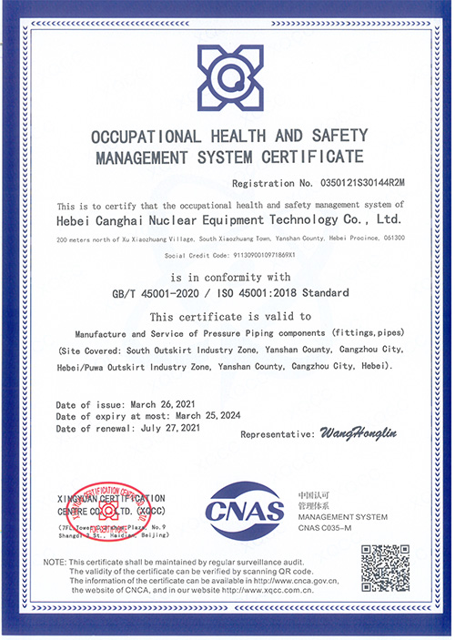 河北滄海職業(yè)健康安全管理體系認(rèn)證證書(英文)
